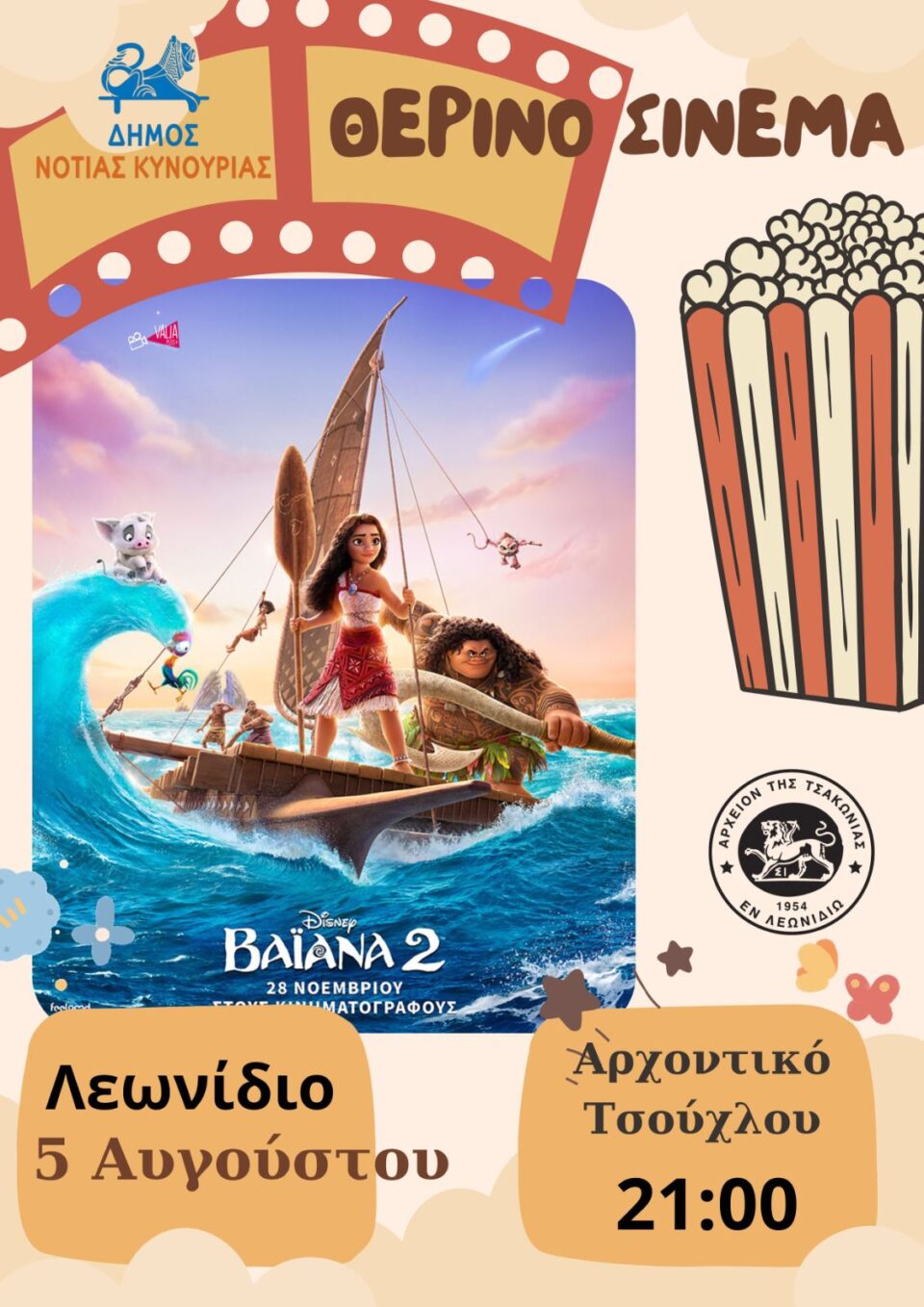 Σήμερα, Τρίτη 5 Αυγούστου, Ώρα έναρξης 21:00, στο Αρχοντικό Τσούχλου, θα προβληθεί η αγαπημένη ταινία κινουμένων σχεδίων της Disney, “Βαϊάνα 2”. Η τολμηρή πριγκίπισσα της Πολυνησίας επιστρέφει με μια νέα περιπέτεια γεμάτη δράση, φαντασία και χιούμορ, που υπόσχεται να ενθουσιάσει μικρούς και μεγάλους.