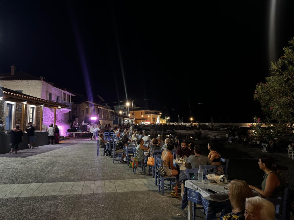 Το λιμάνι και τα μαγαζιά της Πλάκας Λεωνιδίου γέμισαν ασφυκτικά από πλήθος κόσμου, που απόλαυσε μια μοναδική καλοκαιρινή συναυλία δίπλα στη θάλασσα. Η ατμόσφαιρα ήταν γιορτινή, με επισκέπτες και ντόπιους να τραγουδούν και να διασκεδάζουν μέχρι αργά.