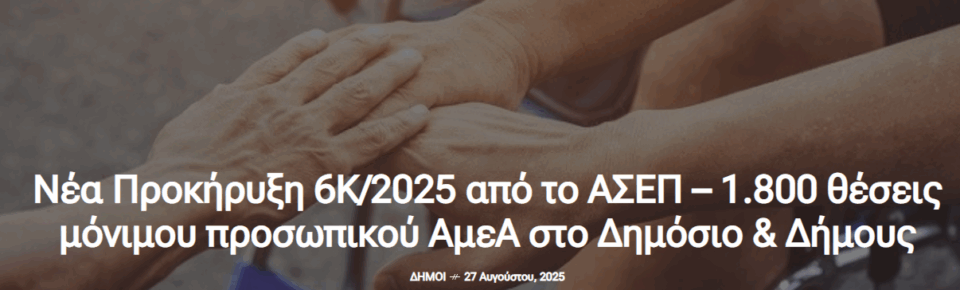 Το ΑΣΕΠ βρίσκεται στην τελική ευθεία για την έκδοση της νέας προκήρυξης 6Κ/2025, η οποία θα αφορά την πρόσληψη περίπου 1.800 μόνιμων υπαλλήλων Ατόμων με Αναπηρία (ΑμεΑ) σε φορείς του Δημοσίου.