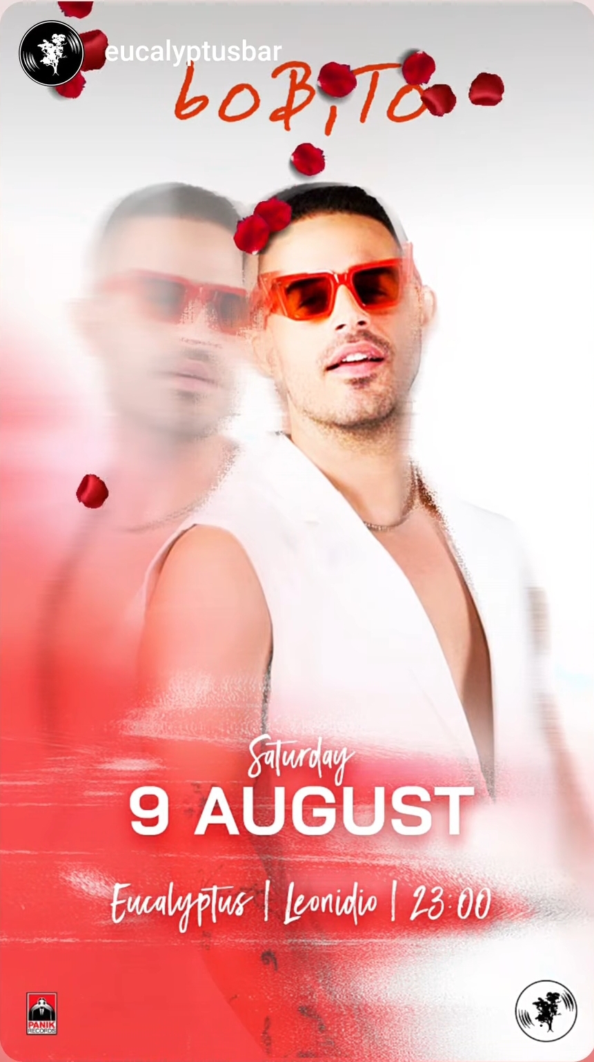 Σήμερα, Σάββατο, 9 Αυγούστου, η νύχτα στον Ευκάλυπτο στην Πλάκα Λεωνιδίου υπόσχεται να είναι μοναδική! Ο αγαπημένος μας Bobby (ή “Bóbito“) έρχεται για να ξεσηκώσει το κοινό με τους δυναμικούς του ρυθμούς και ατέλειωτο κέφι. Ανυπομονείτε για μια αξέχαστη βραδιά γεμάτη ενέργεια, τότε δεν υπάρχει καλύτερο μέρος από τον Ευκάλυπτο!