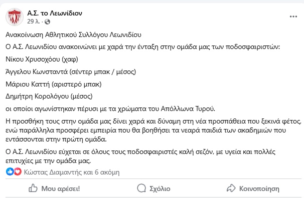 Ο Α.Σ. Λεωνιδίου ανακοινώνει με χαρά την ένταξη στην ομάδα μας των ποδοσφαιριστών: