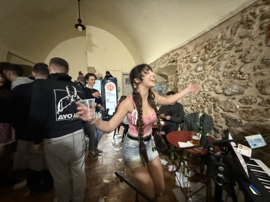 Η γιορτινή διάθεση παρέμεινε στα ύψη, με τραγούδια, χορό και χαμόγελα να κρατούν ζωντανό το αποκριάτικο κλίμα μέχρι αργά. Οι παρέες έγιναν μια μεγάλη συντροφιά και το κέφι δεν άργησε να ανάψει για τα καλά, χαρίζοντας ένα όμορφο κλείσιμο στη φετινή Αποκριά. 🎉