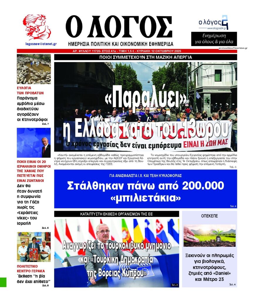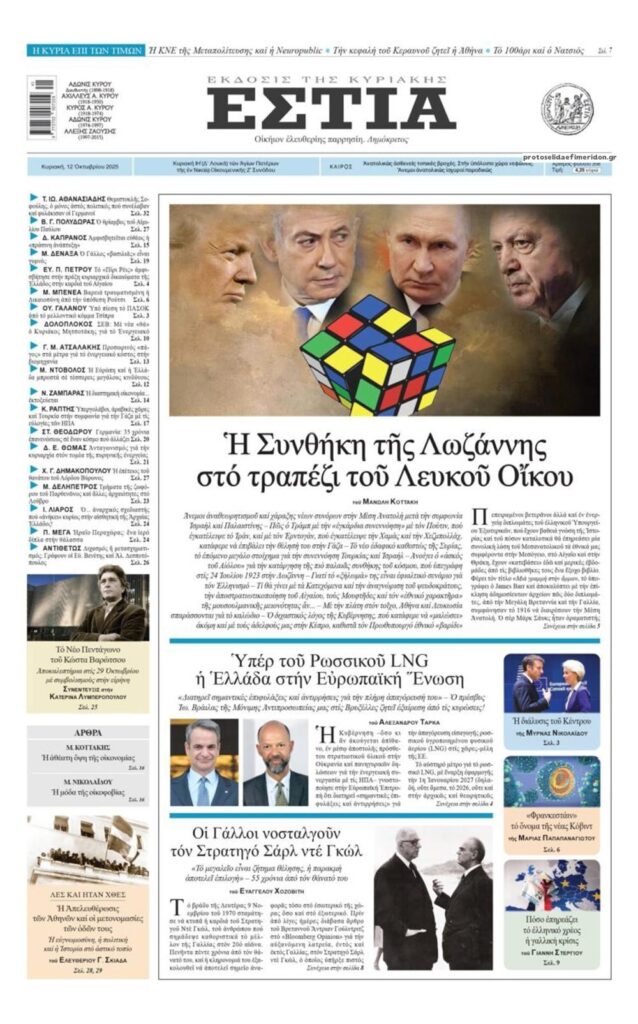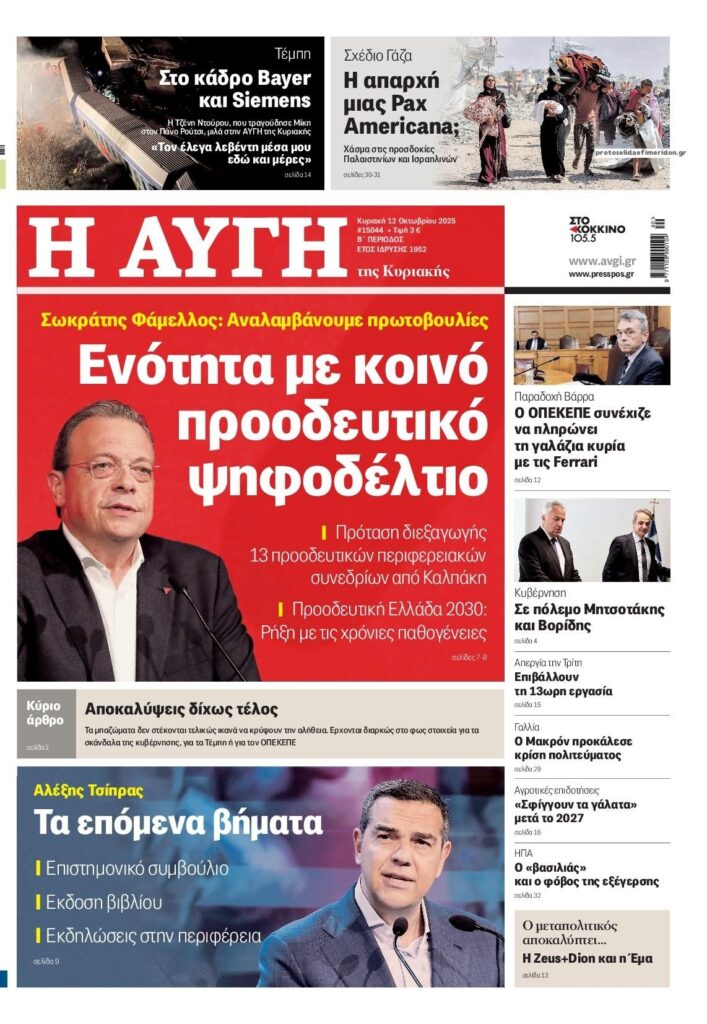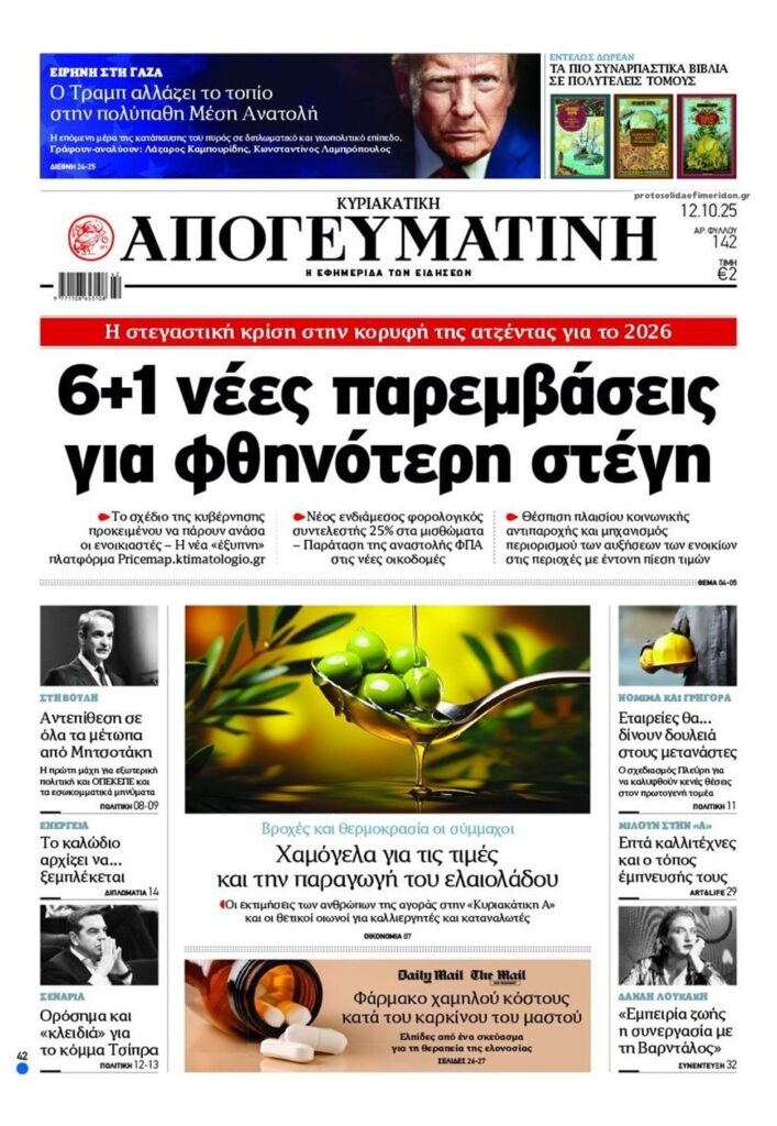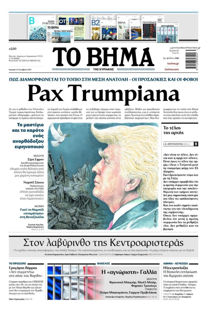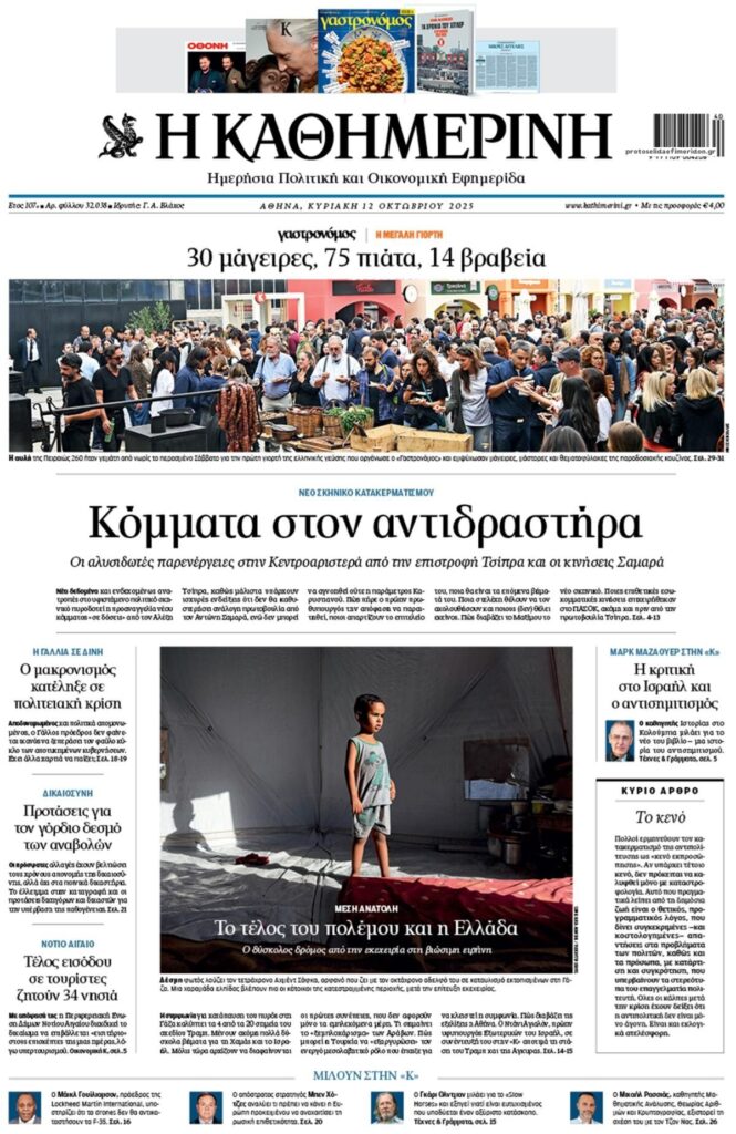🗞️ Τα Πρωτοσέλιδα των Εφημερίδων της Κυριακής 12 Οκτωβρίου 2025