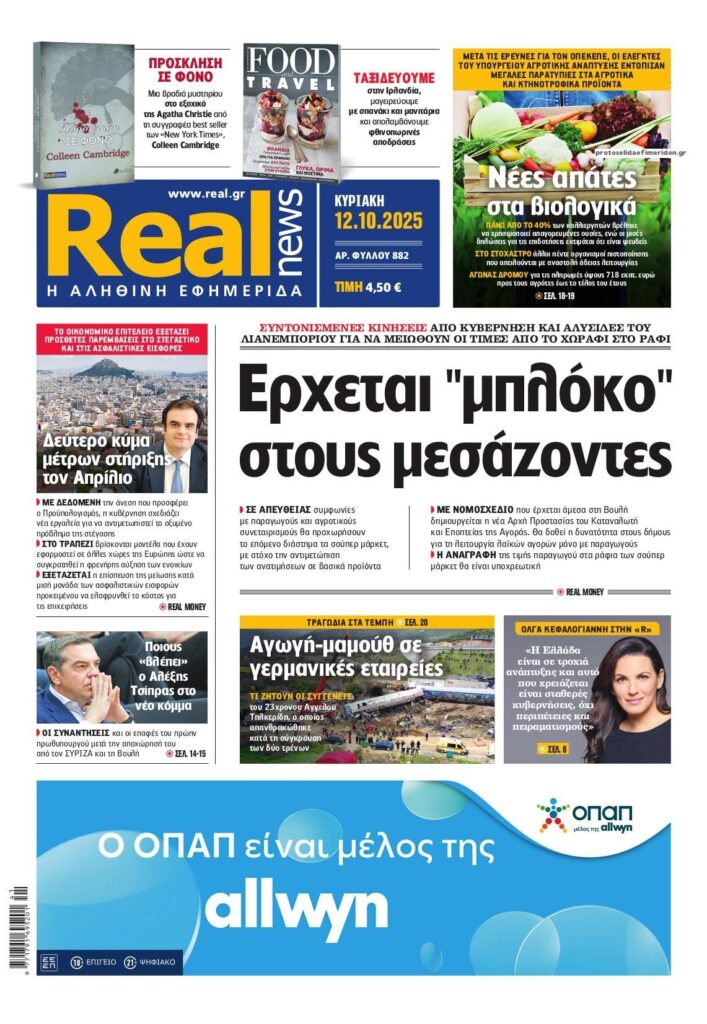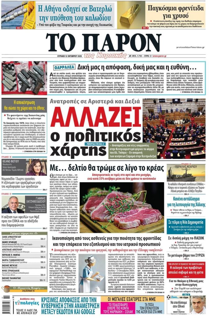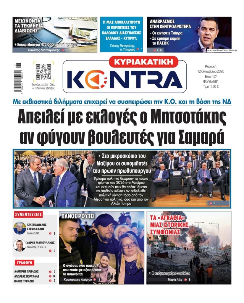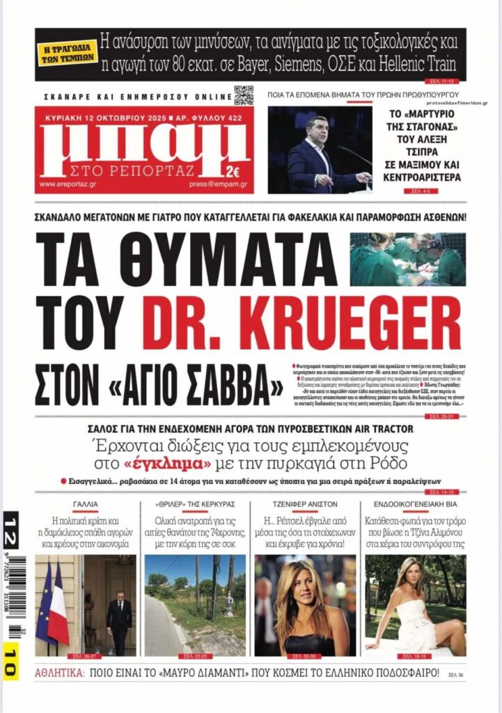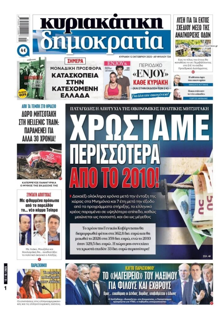 🗞️ Τα Πρωτοσέλιδα των Εφημερίδων της Κυριακής 12 Οκτωβρίου 2025