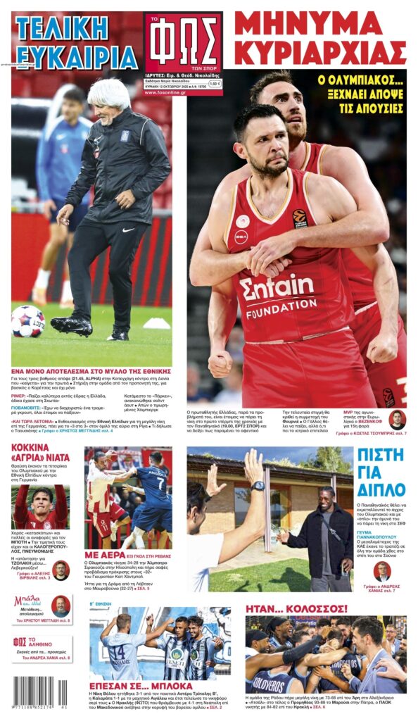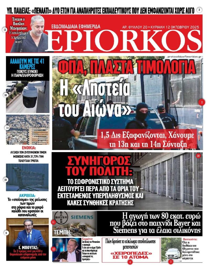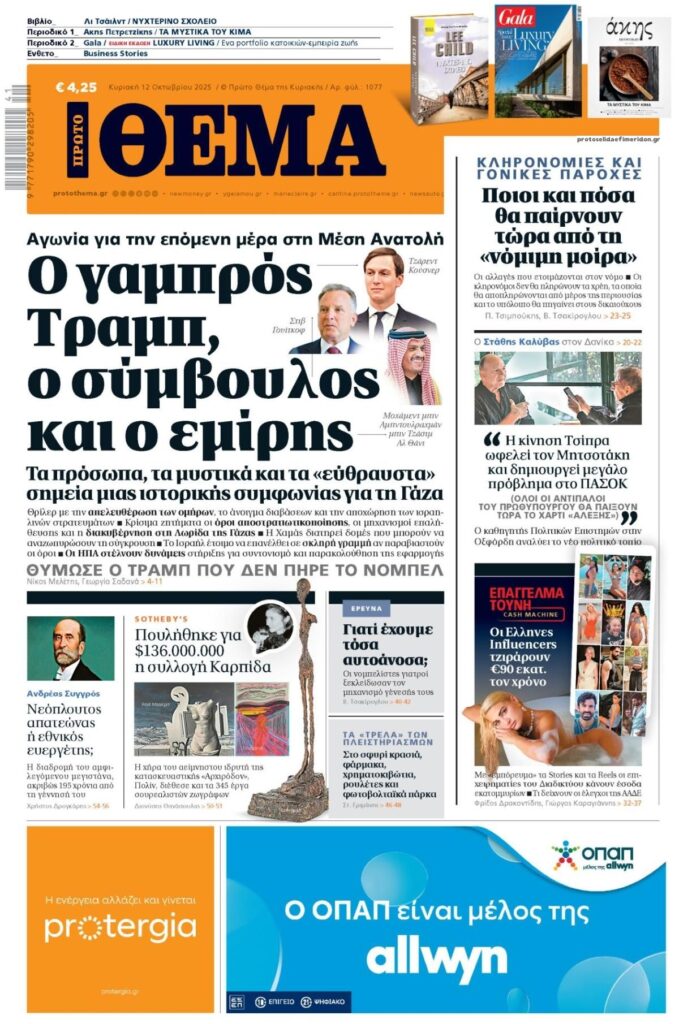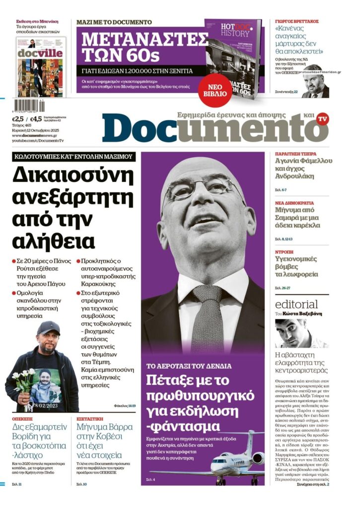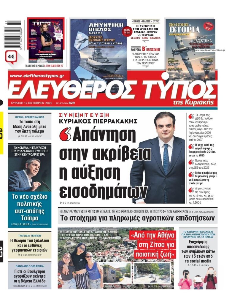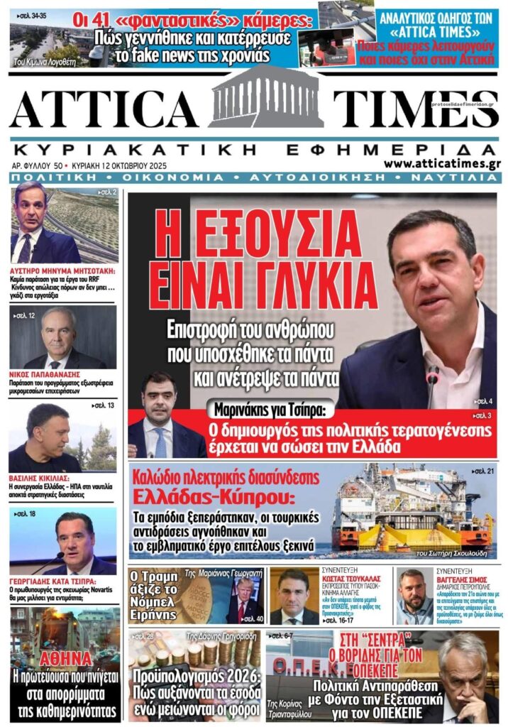 🗞️ Τα Πρωτοσέλιδα των Εφημερίδων της Κυριακής 12 Οκτωβρίου 2025
