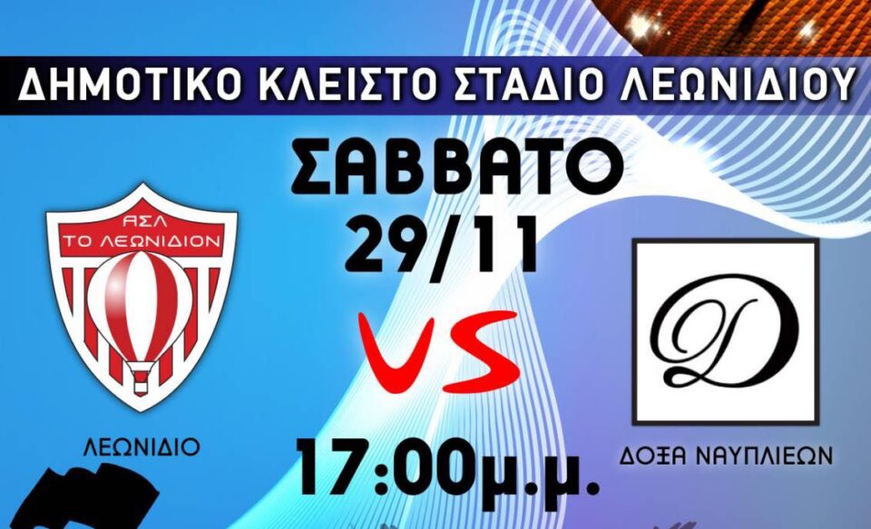 Στο πλαίσιο του Πρωταθλήματος Α1 ΕΣΚΑΚ Ανδρών, ο Αθλητικός Σύλλογος Λεωνιδίου ετοιμάζεται να υποδεχτεί τη Δόξα Ναυπλίου στο Δημοτικό Κλειστό Στάδιο Λεωνιδίου. Ο αγώνας θα διεξαχθεί το Σάββατο 29 Νοεμβρίου, στις 17:00, σε μια αναμέτρηση που αναμένεται να προσελκύσει πλήθος φιλάθλων της περιοχής.