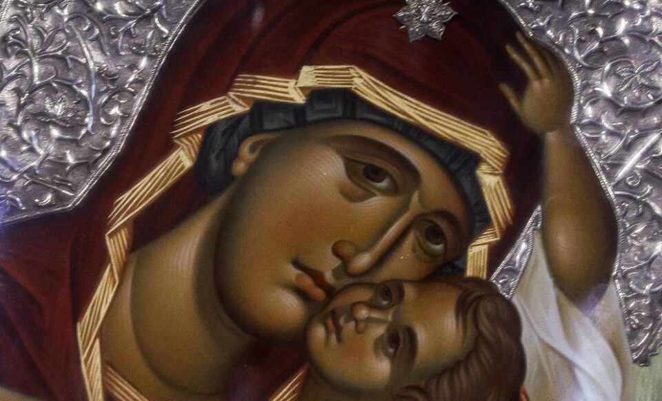 Το Έργο Τέχνης απεικονίζει της Παναγία που κρατάει το Θείο Βρέφος και αποδίδεται στον Ιταλό ζωγράφο Πιέτρο Βανούτσι, γνωστότερος ως «Περουτζίνο» (1450–1523).