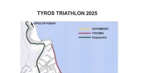 Ο Δήμος Νότιας Κυνουρίας ανακοίνωσε προσωρινές κυκλοφοριακές ρυθμίσεις για την Κυριακή 21 Σεπτεμβρίου 2025, λόγω της διεξαγωγής του «Tyros Triathlon 2025».