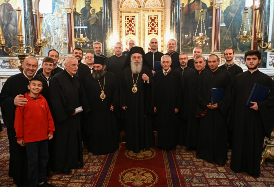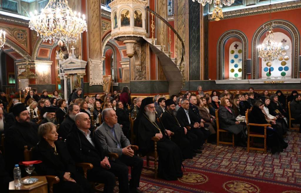 Ιδιαίτερη συγκίνηση προκάλεσε η απόδοση εόρτιων και κατανυκτικών ύμνων από τον Αριστερό Χορό του Ιερού Μητροπολιτικού Ναού Αθηνών, υπό τη διεύθυνση του κ. Αλεξίου Κατσαρού , εκ Λεβιδίου, συμβάλλοντας καθοριστικά στη δημιουργία κλίματος ευλάβειας, κατάνυξης και πνευματικής ανάτασης.