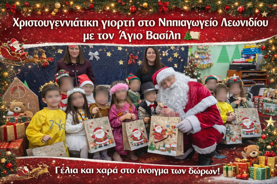 Πραγματοποιήθηκε με επιτυχία η χριστουγεννιάτικη γιορτή του Νηπιαγωγείου Λεωνιδίου, σε ένα ζεστό και χαρούμενο κλίμα, γεμάτο παιδικά χαμόγελα.