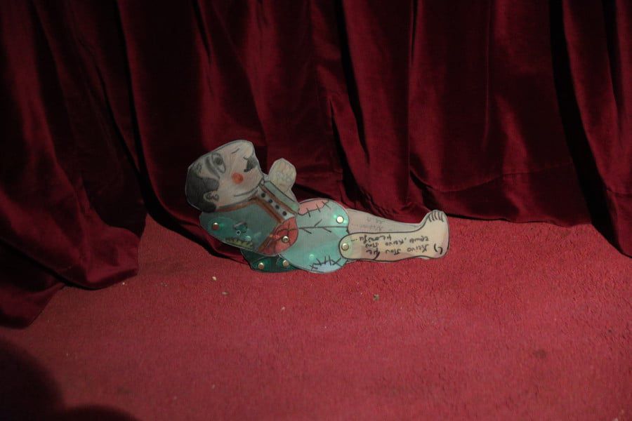 Συγκίνηση προκάλεσε και η φιγούρα του Καραγκιόζη που έχει τοποθετηθεί στο φέρετρο, με τη φράση «Κείνο που με τρώει, κείνο που με σώζει…».