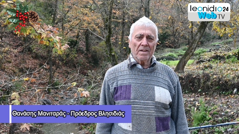 Τις θερμότερες ευχές του ενόψει των εορτών στέλνει ο πρόεδρος της Δημοτικής Κοινότητας Βλησιδιάς, Θανάσης Μανιταράς, από το πανέμορφο χωριό της Νότιας Κυνουρίας, που ξεχωρίζει για τα νερά και τα πλατάνια του.