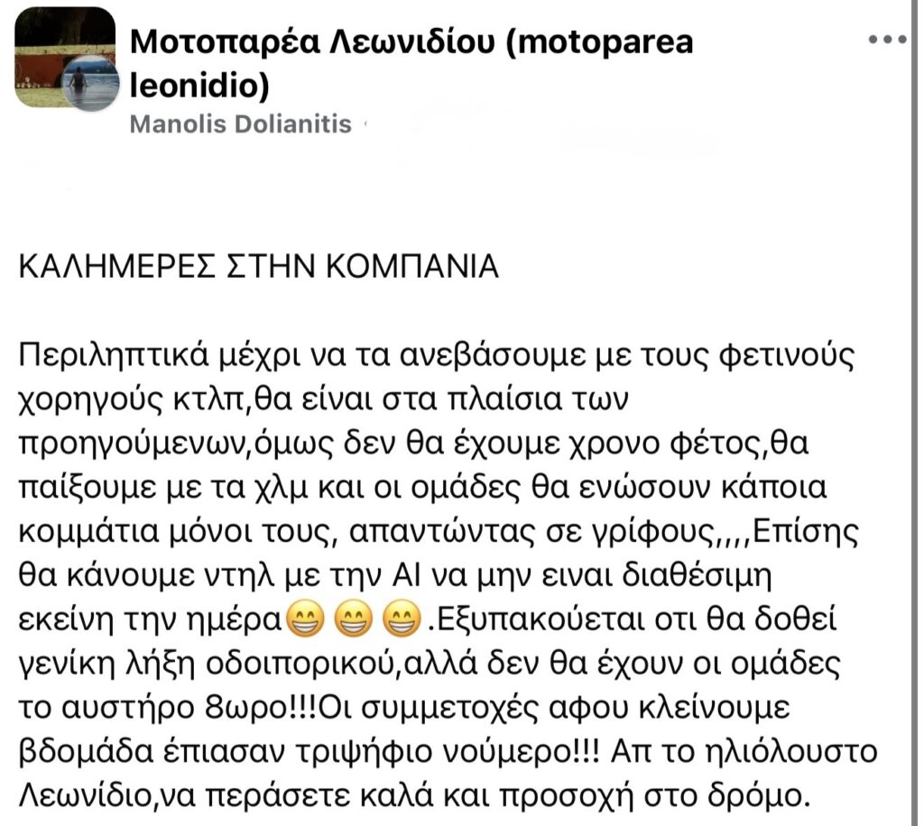 Η Γραμματεία ευχαριστεί όλους για το ενδιαφέρον και τη συμμετοχή και υπενθυμίζει την ανάγκη για προσοχή κατά τις μετακινήσεις.