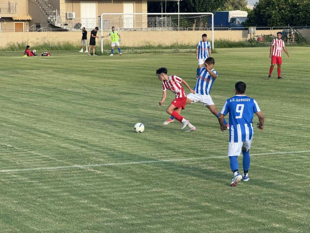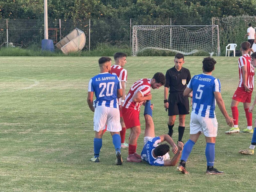 Ο αγώνας είχε καλό ρυθμό και δυνατές μονομαχίες, ενώ δόθηκε χρόνος συμμετοχής σε αρκετούς νεαρούς ποδοσφαιριστές, οι οποίοι άφησαν θετικές εντυπώσεις. Από την πλευρά της, η ομάδα του Δαφνίου έδειξε επίσης καλή εικόνα, δημιουργώντας ευκαιρίες και πιέζοντας σε αρκετά σημεία του παιχνιδιού.