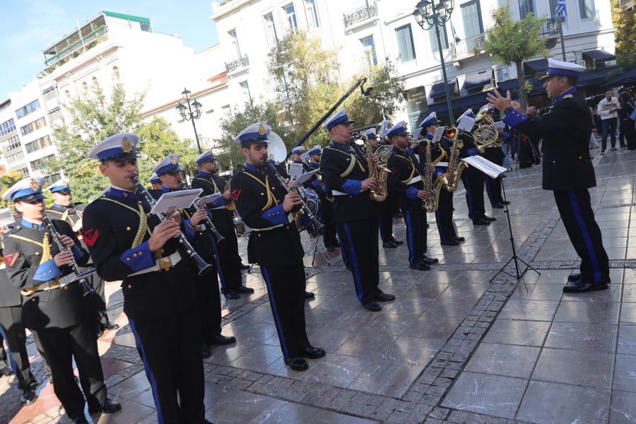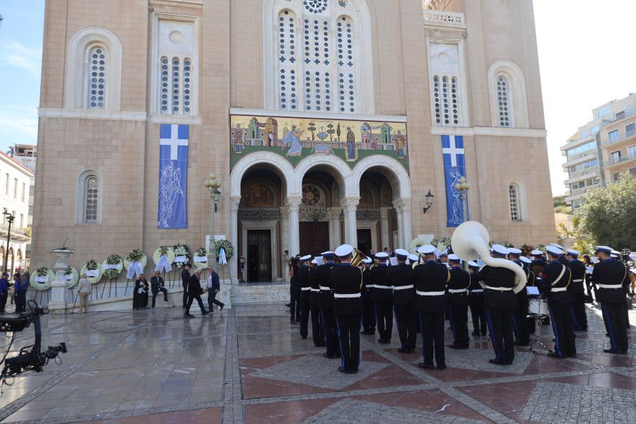 Παράλληλα, η μπάντα του πολεμικού Ναυτικού ξεκινά με πένθιμα εμβατήρια, για μία ώρα.