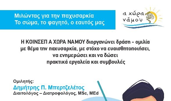 Η ΚΟΙΝΣΕΠ Α ΧΩΡΑ ΝΑΜΟΥ διοργανώνει δράση ομιλία για την Παχυσαρκία – Το σώμα, το φαγητό, ο εαυτός μας
