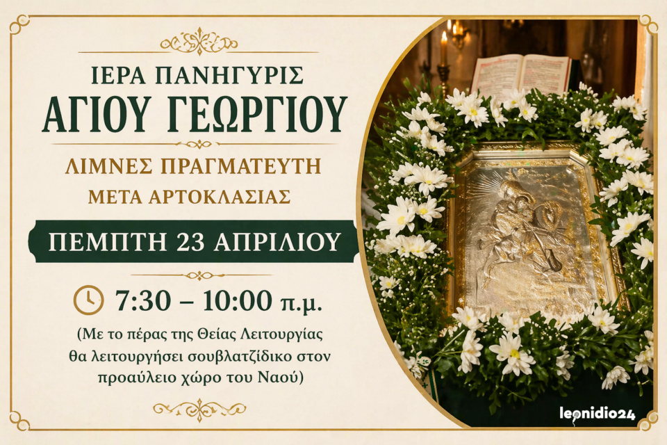 Την Ιερά Πανήγυρη του Αγίου Γεωργίου θα τιμήσουν οι πιστοί στις Λίμνες Πραγματευτή την Πέμπτη 23 Απριλίου, με την τέλεση της Θείας Λειτουργίας και αρτοκλασίας.