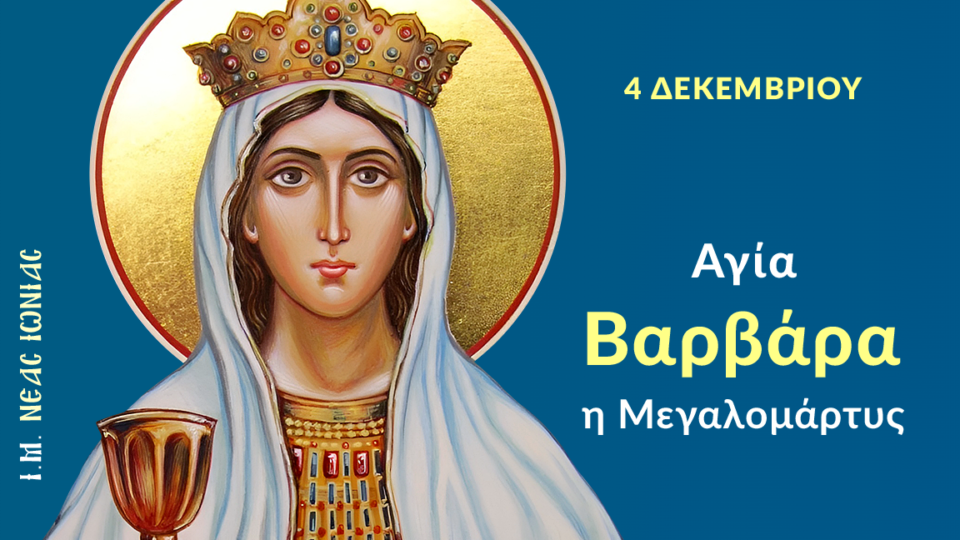 Πέμπτη 4 Δεκεμβρίου και η Εκκλησία τιμά σήμερα τη μνήμη της Αγίας Βαρβάρας της Μεγαλομάρτυρος, μιας από τις πλέον γνωστές και ιδιαίτερα αγαπητές αγίες της Ορθοδοξίας. Η Αγία Βαρβάρα έζησε τον 3ο αιώνα και ξεχώρισε για το θάρρος, την πίστη και την πνευματική της δύναμη. Γνωστή ως προστάτιδα του Πυροβολικού και της αστραπής, θεωρείται φύλακας από τον αιφνίδιο θάνατο και επικαλείται συχνά σε στιγμές κινδύνου. Ο βίος της συγκινεί για την αφοσίωση και την αμετακίνητη πίστη της, που την οδήγησε στο μαρτύριο παρά τις πιέσεις και τα δεινά που υπέστη.