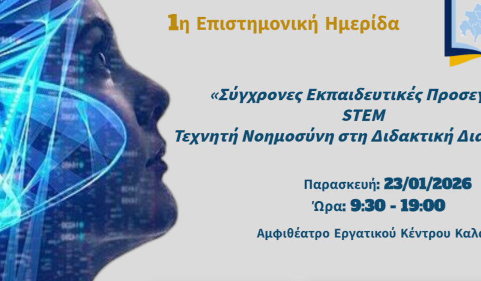 Η Περιφερειακή Διεύθυνση Πρωτοβάθμιας και Δευτεροβάθμιας Εκπαίδευσης Πελοποννήσου, αναγνωρίζοντας την ανάγκη για διαρκή επιμόρφωση των εκπαιδευτικών στις νέες τεχνολογίες, διοργανώνει Επιστημονική Ημερίδα με τίτλο: «Σύγχρονες Εκπαιδευτικές Προσεγγίσεις / STEM και Τεχνητή Νοημοσύνη στη Διδακτική Διαδικασία».