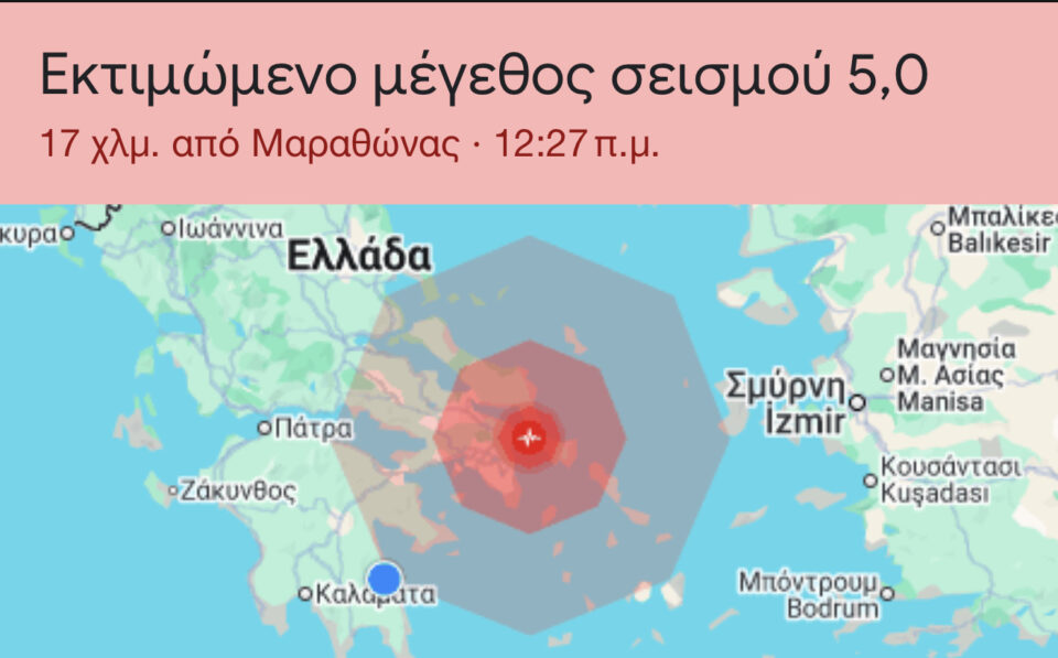 Η πρώτη καταγραφή του Γεωδυναμικού κάνει λόγο για δόνηση άνω των 5 Ρίχτερ στα ανοιχτά των Νέων Στύρων, στην Εύβοια
