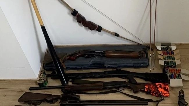 Κατά τη διάρκεια των ερευνών βρέθηκαν και κατασχέθηκαν: «Πιστόλι με γεμιστήρα, τρία πολεμικά τυφέκια, δύο κυνηγετικά όπλα, δύο αεροβόλα όπλα, 143 φυσίγγια, κάνη πολεμικού όπλου, 13 κάλυκες και δύο γεμιστήρες».