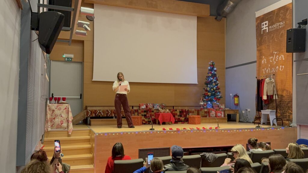 Με ιδιαίτερη λαμπρότητα και ξεχωριστή επιτυχία παρουσιάστηκε την Παρασκευή 19 Δεκεμβρίου 2025 η θεατρική παράσταση «Χριστούγεννα Χωρίς Ρεύμα» από το Τμήμα Μουσικοθεατρικής Αγωγής στη Φάμπρικα Πολιτισμού Λεωνιδίου. Το κοινό ανταποκρίθηκε θερμά, γεμίζοντας την αίθουσα και δημιουργώντας μια γιορτινή, ζεστή ατμόσφαιρα που ταίριαζε απόλυτα στο πνεύμα των Χριστουγέννων.