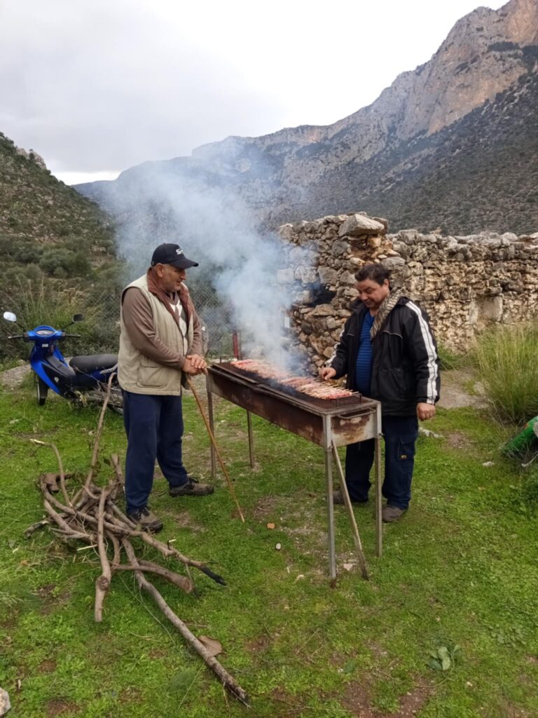 Μέλη και φίλοι του συλλόγου αντάλλαξαν ευχές για τη νέα χρονιά, απολαμβάνοντας πλούσια εδέσματα, ενώ την παράσταση έκλεψαν τα άλογα, που με την παρουσία τους ομόρφυναν ακόμη περισσότερο το ήδη εντυπωσιακό φυσικό τοπίο.