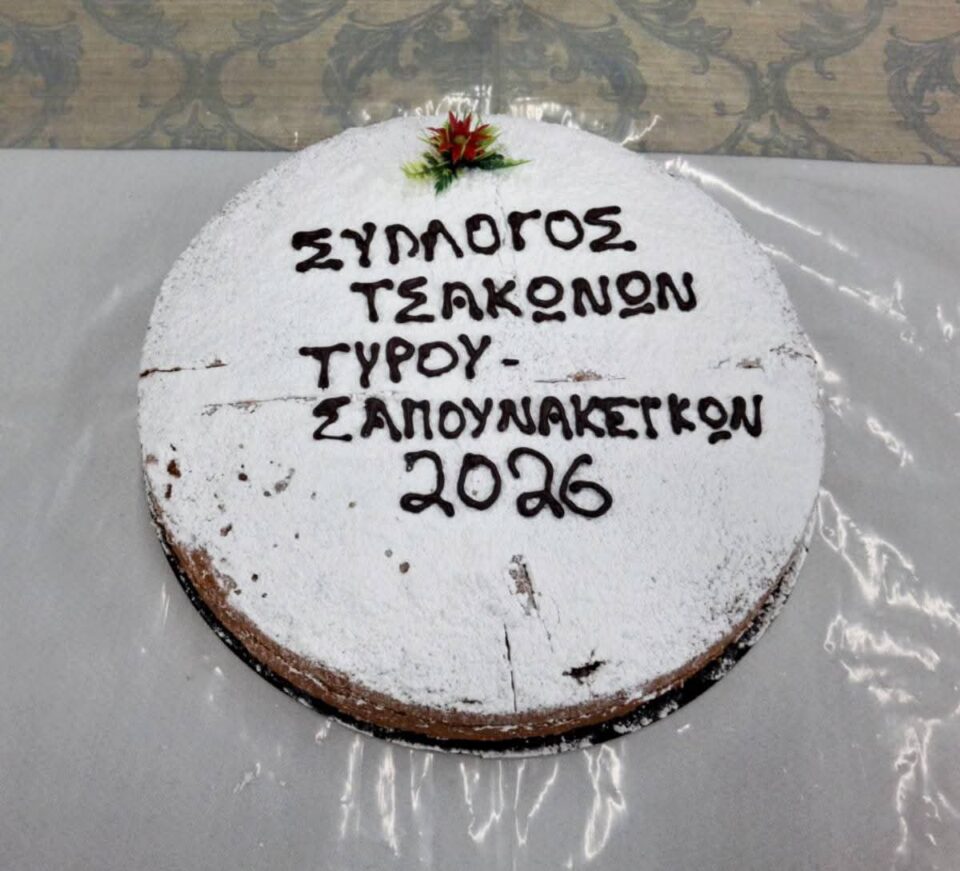 Σε μια ιδιαίτερα ζεστή και εορταστική ατμόσφαιρα πραγματοποιήθηκε σήμερα η καθιερωμένη κοπή της βασιλόπιτας του Συλλόγου Τσακώνων Τυρού – Σαπουνακειΐκων.