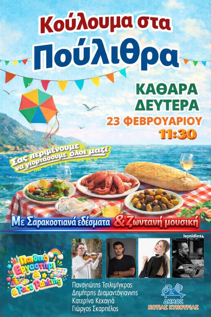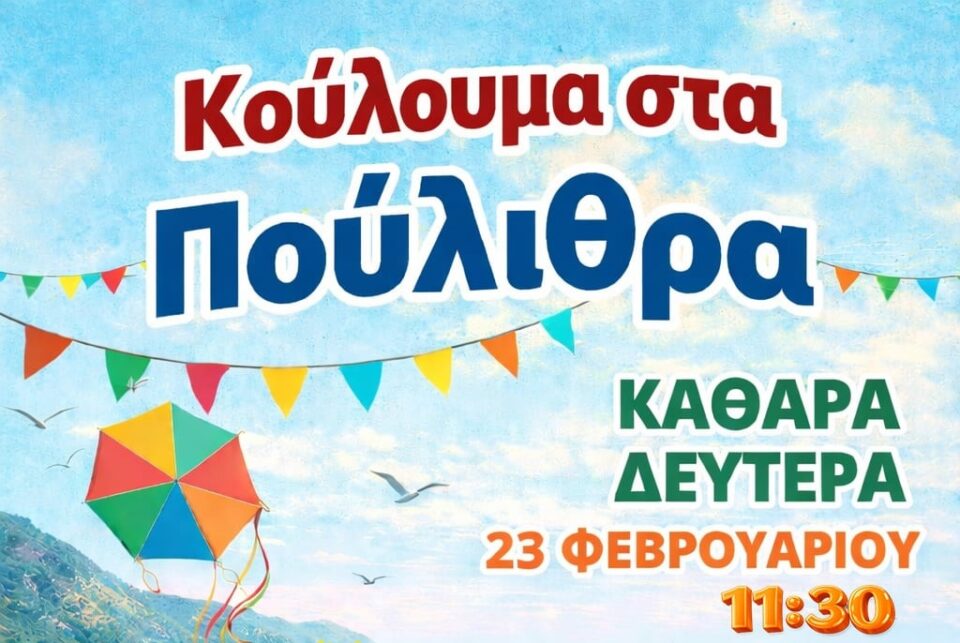 Με παραδοσιακά εδέσματα, ζωντανή μουσική και παιδικές δραστηριότητες θα γιορταστούν φέτος τα Κούλουμα στα Πούλιθρα, την Καθαρά Δευτέρα 23 Φεβρουαρίου και ώρα 11:30 π.μ.