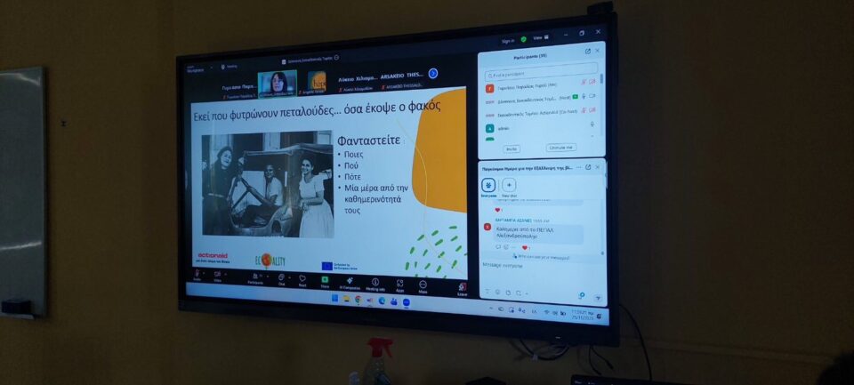 Στη σημερινή δραστηριότητα οι μαθητές/τριες ενημερώθηκαν από την ομάδα έργου του Εκπαιδευτικού Τομέα της ActionAid (και κυρίως την κα Δέσποινα Καρδογέρου) για τη Διεθνή ημέρα για την εξάλειψη της βίας κατά των γυναικών και τα γεγονότα που οδήγησαν στην καθιέρωσή της, και συζήτησαν για τα στοιχεία εκείνα που στοιχειοθετούν την ύπαρξη του φαινομένου της βίας κατά των γυναικών. Μέσα από την κατάθεση απόψεων των μαθητών/τριών από αρκετά σχολεία από όλη την Ελλάδα δημιουργήθηκαν πολλές απορίες και εύλογοι στοχασμοί οι οποίοι συνέβαλλαν στην ανάπτυξη της κριτικής σκέψης, ενθάρρυναν τον αναστοχασμό και ενισχύσαν Δεξιότητες Ζωής, όπως δεξιότητες αυτές της κοινωνικής ζωής και της κοινωνικής ενσυναίσθησης!