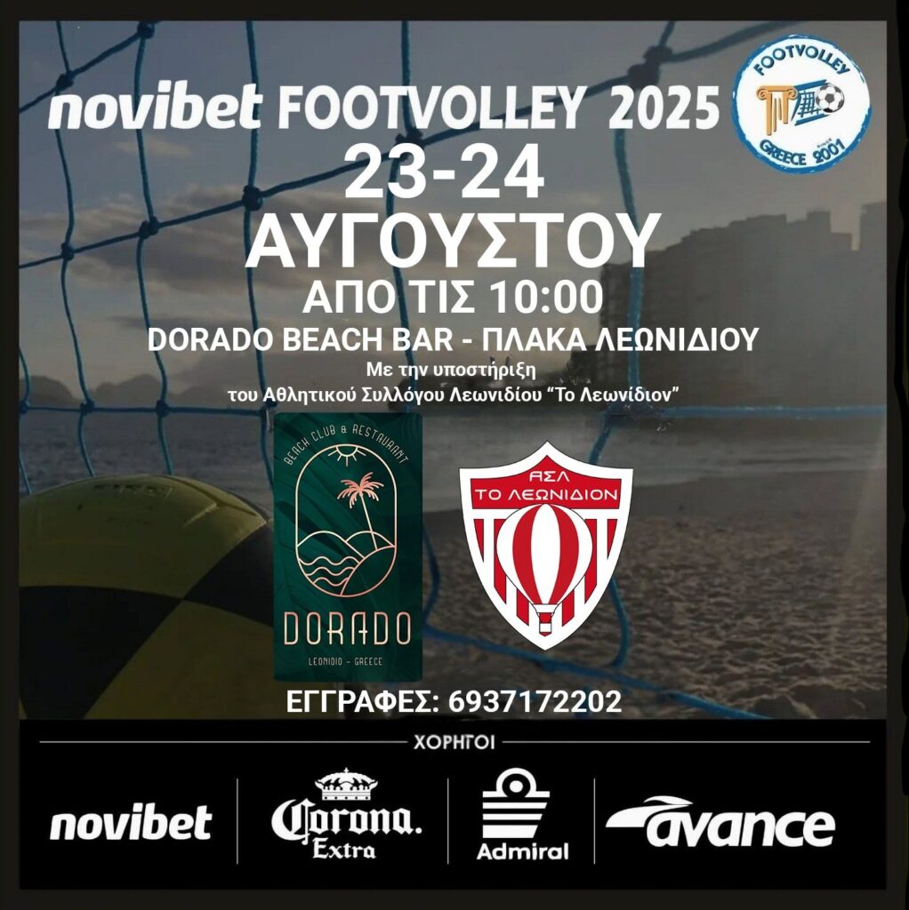 Με απόλυτη επιτυχία ολοκληρώθηκε το τουρνουά Footvolley 2025 που φιλοξενήθηκε το Σαββατοκύριακο 23-24 Αυγούστου στην παραλία της Πλάκας, με φόντο το πανέμορφο τοπίο και την υποστήριξη του Αθλητικού Συλλόγου Λεωνιδίου.