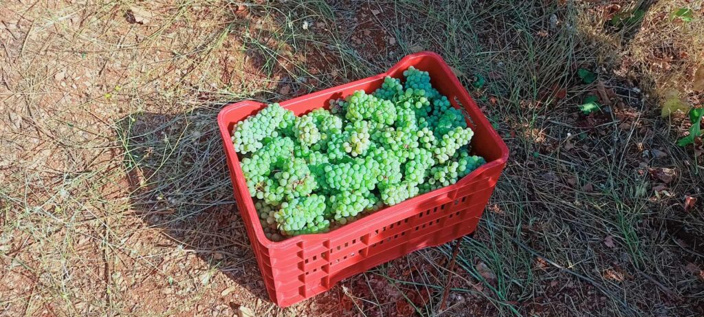Από νωρίς το πρωί, οι παραγωγοί, βρέθηκαν στα κτήματα με ψαλίδια και τελάρα. Οι πρώτες ακτίνες του ήλιου έπεσαν πάνω στις ρόγες, αναδεικνύοντας το βαθύ μπλε και το ζωηρό πράσινο των ποικιλιών. Η δουλειά δεν είναι εύκολη, όμως ο τρύγος έχει έναν ιδιαίτερο ρυθμό που συνδυάζει κόπο και χαρά.