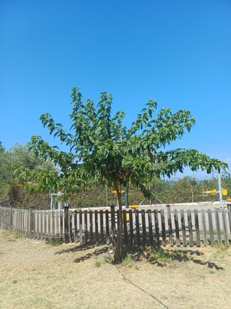 Σήμερα, τρία χρόνια μετά, οι μουριές αυτές έχουν αναπτυχθεί εντυπωσιακά. Από μικρά, λεπτά δενδράκια, έχουν πλέον ψηλώσει, άνοιξαν τα κλαδιά τους και χαρίζουν πλούσιο φύλλωμα. Η εικόνα της παιδικής χαράς έχει αλλάξει, καθώς τα δέντρα δημιουργούν φυσικό καταφύγιο από τον ήλιο και δίνουν έναν πιο ζεστό, φιλόξενο χαρακτήρα στον χώρο.