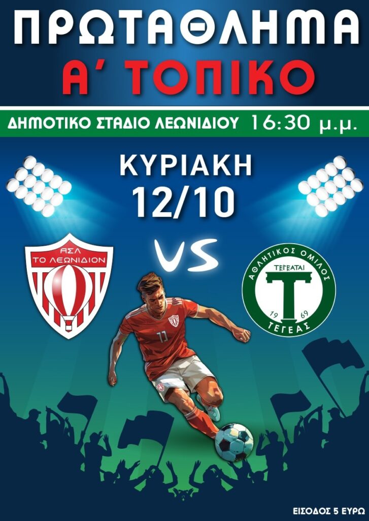 Την Κυριακή 12 Οκτωβρίου, στις 16:30, υποδεχόμαστε τον Α.Ο. Τεγέας στο Δημοτικό Στάδιο Λεωνιδίου και σας θέλουμε όλους στο πλευρό μας!