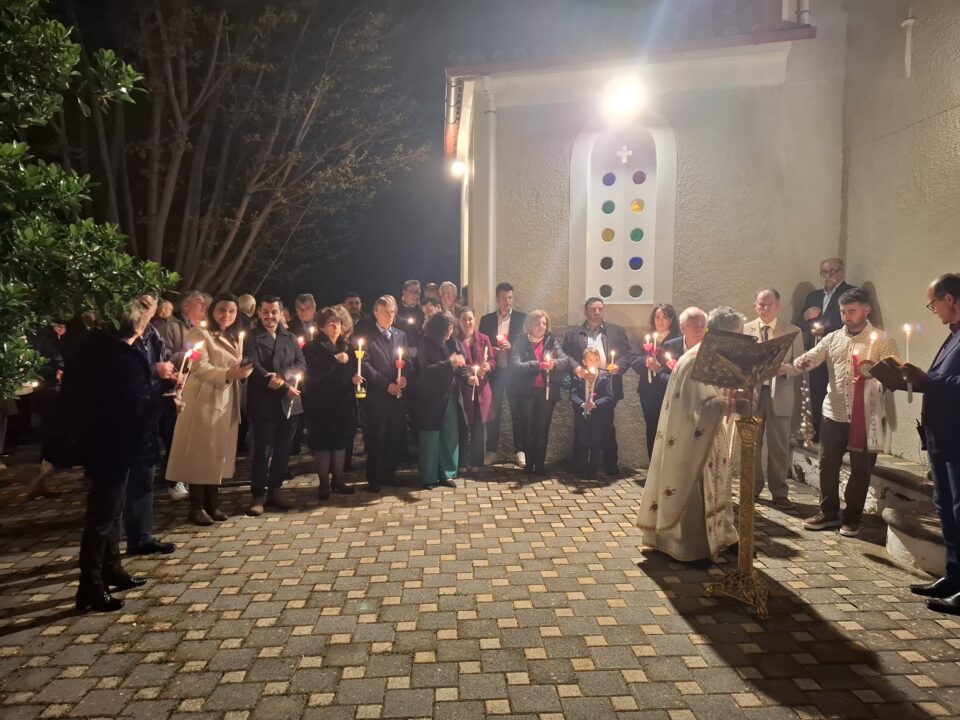 Το «Χριστός Ανέστη» αντήχησε στον χώρο της εκκλησίας, με τους πιστούς να ανταλλάσσουν ευχές και να κρατούν το Άγιο Φως.
