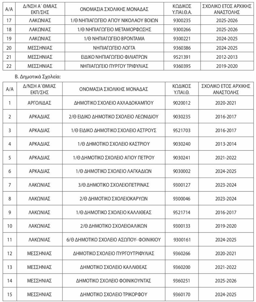 Αναστέλλεται η λειτουργία 15 Δημοτικών Σχολείων και 22 Νηπιαγωγείων στην Πελοπόννησο