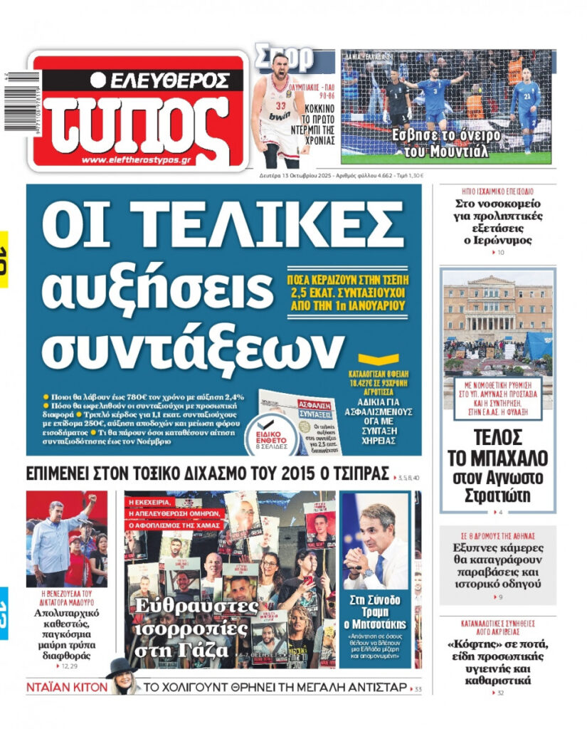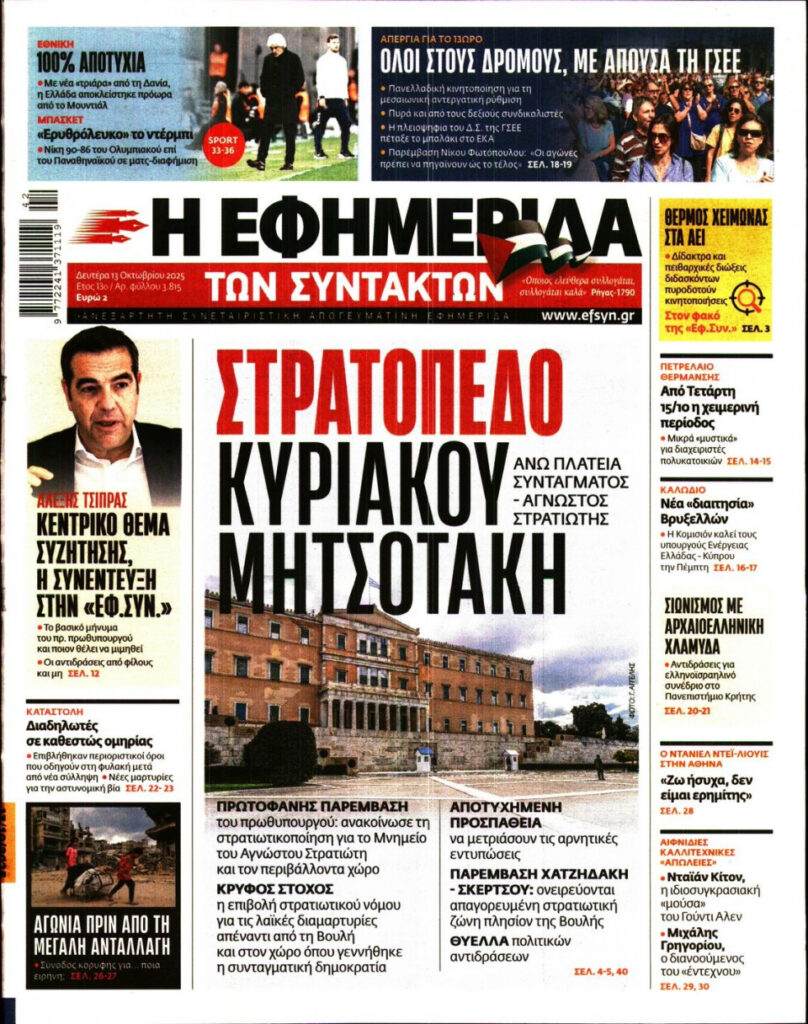 Πρωτοσέλιδα Δευτέρας 13 Οκτωβρίου – Τι γράφουν οι εφημερίδες