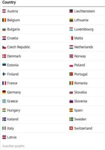 Η Ιρλανδία και η Κύπρος θα συνεχίσουν να σφραγίζουν τα διαβατήρια των εισερχόμενων επιβατών. Το Ηνωμένο Βασίλειο δεν ανήκει στη ζώνη Σένγκεν.