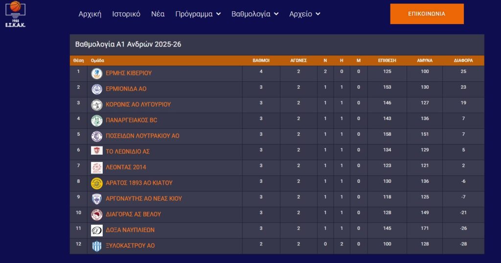 Μετά τα δύο πρώτα παιχνίδια της σεζόν 2025-26, το Λεωνίδιο ΑΣ βρίσκεται στην 6η θέση της βαθμολογίας της Α1 ΕΣΚΑΚ, με 3 βαθμούς.