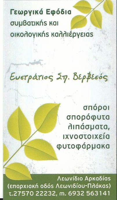Στην τοπική αγορά, το φυτώριο του Ευστράτιου Βερβεσού αποτελεί μία αξιόπιστη επιλογή για όσους επιθυμούν ποιοτικά φυτά και σωστή καθοδήγηση. Διαθέτει μεγάλη ποικιλία σε κηπευτικά, όπως ντομάτες, την παραδοσιακή τσακώνικη μελιτζάνα, κολοκύθια, πιπεριές, φασολάκια, αγγούρια και πολλά ακόμη εποχικά είδη.