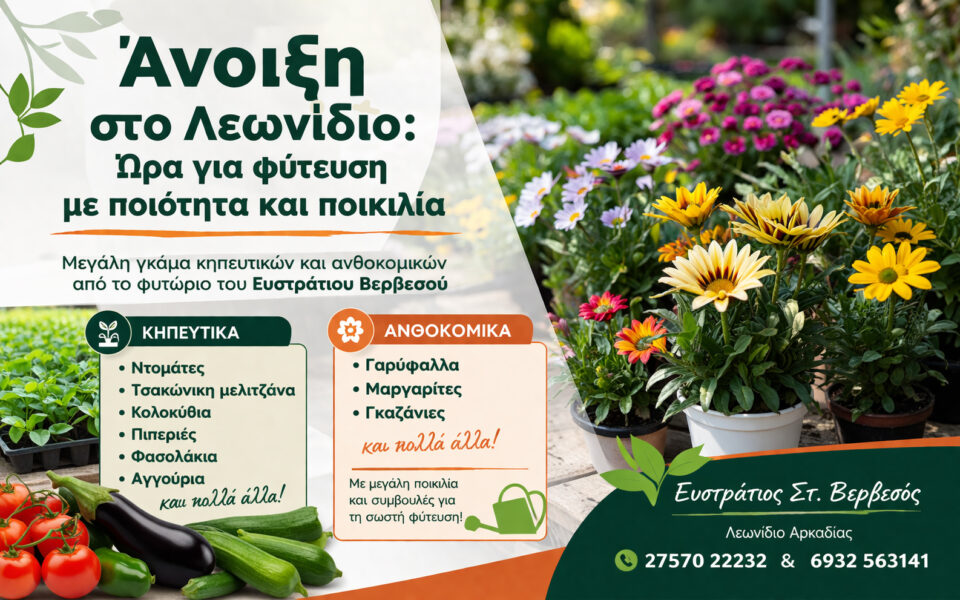 Με την άνοιξη να βρίσκεται σε εξέλιξη, η φύτευση κηπευτικών και καλλωπιστικών φυτών βρίσκεται στο επίκεντρο του ενδιαφέροντος για επαγγελματίες και ιδιώτες στο Λεωνίδιο.