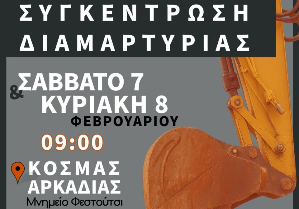 Συγκέντρωση διαμαρτυρίας στον Κοσμά Αρκαδίας το Σαββατοκύριακο 7 και 8 Φεβρουαρίου