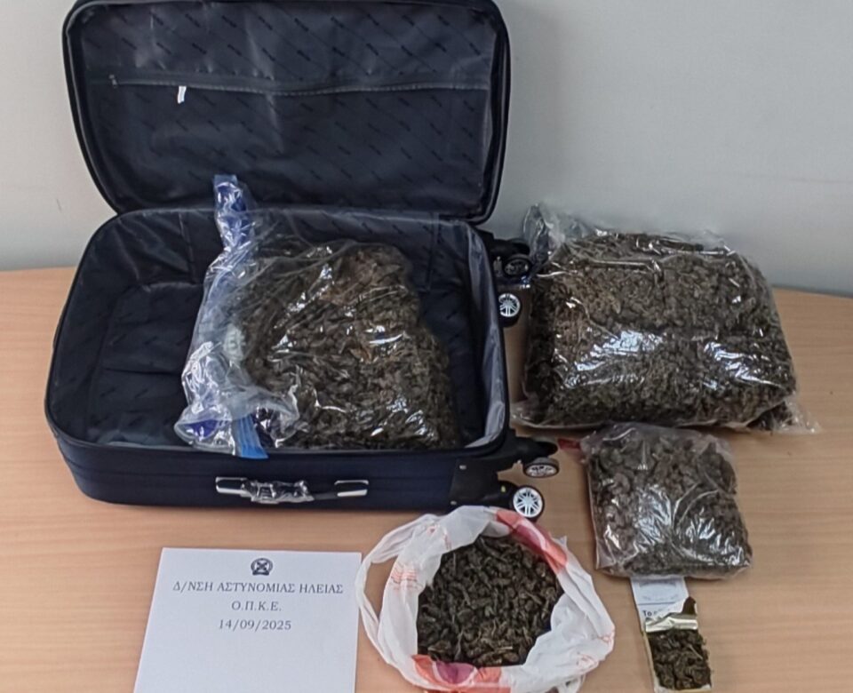 Έξι κιλά κάνναβης εντόπισαν σε αυτοκίνητοι οι αστυνομικοί της ΟΠΚΕ της Ασφάλειας Πύργου, κατά τη διάρκεια αστυνομικού ελέγχου στον Πύργο. Η ποσότητα των ναρκωτικών ήταν τοποθετημένη μέσα σε εκδρομική βαλίτσα και κατανεμημένη σε τέσσερις νάιλον συσκευασίες και ένα πακέτο τσιγάρων. Στη βαλίτσα βρέθηκαν επίσης και δύο κινητά τηλέφωνα.