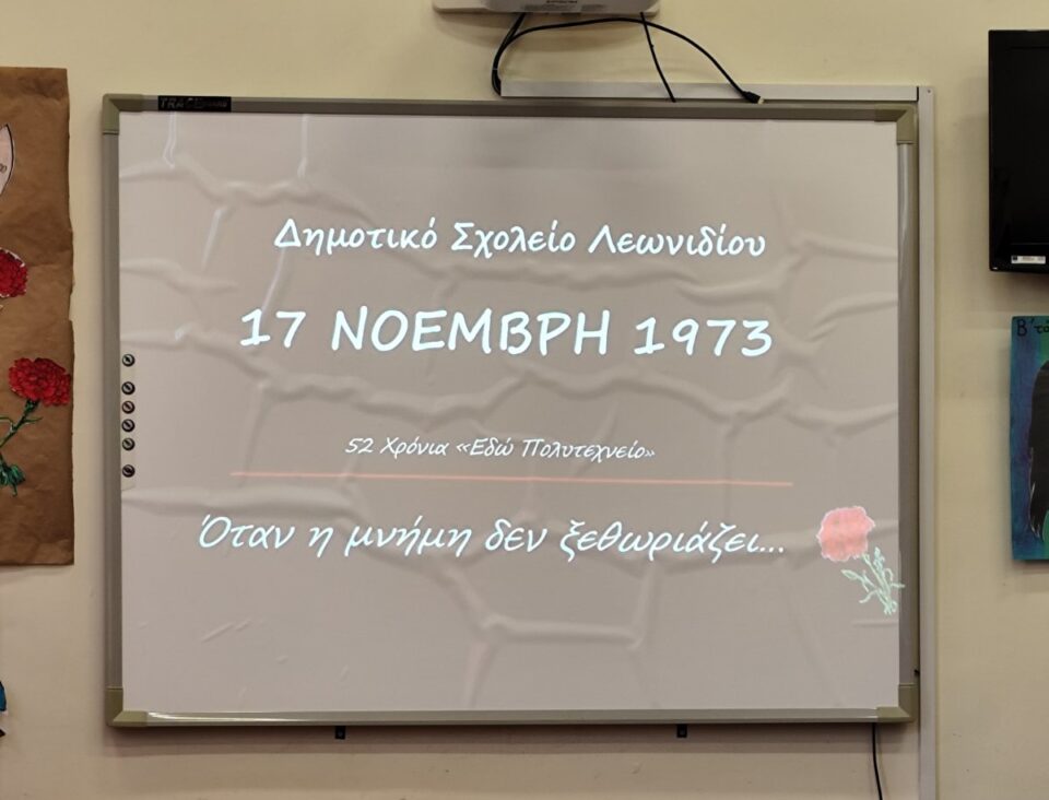 Στο Δημοτικό Σχολείο Λεωνιδίου παρευρέθηκε η Αντιδήμαρχος Παιδείας, Ειρήνη Κεμέρλη, η οποία συνεχάρη μαθητές και εκπαιδευτικούς για την άρτια προετοιμασία των εκδηλώσεων, υπογραμμίζοντας τη σημασία της παιδείας στη διατήρηση της ιστορικής μνήμης.