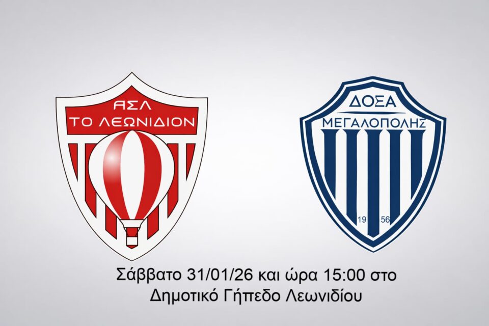 Ο Αθλητικός Σύλλογος Λεωνιδίου καλεί όλους τους φίλους της ομάδας να δώσουν δυναμικό παρών και να στηρίξουν τον αγώνα ποδοσφαίρου που θα διεξαχθεί το Σάββατο 31/01/26 και ώρα 15:00 στο Δημοτικό Γήπεδο Λεωνιδίου, με αντίπαλο τη Δόξα Μεγαλόπολης.