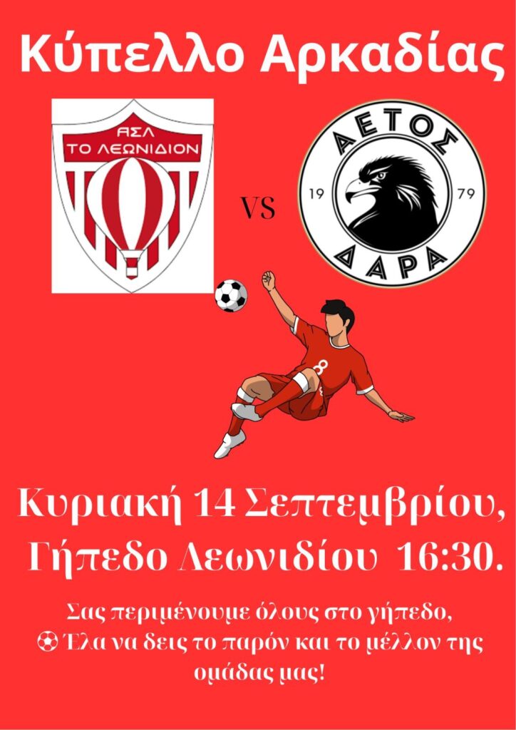 Η ποδοσφαιρική ομάδα του Αθλητικού Συλλόγου Λεωνιδίου υποδέχεται τον Αετό Δάρα, την Κυριακή 14 Σεπτεμβρίου, στο Γήπεδο Λεωνιδίου στις 16:30.