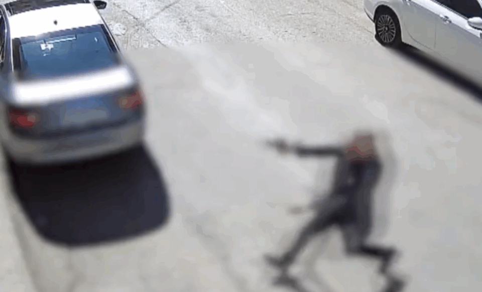 Βίντεο από κάμερα ασφαλείας καταγράφει την στιγμή που ο 60χρονος οδοντοτεχνίτης κατεβαίνει από το αυτοκίνητό του, βγάζει το όπλο, μπαίνει σε ένα κτίριο και εκεί δολοφονεί την σύζυγό του.