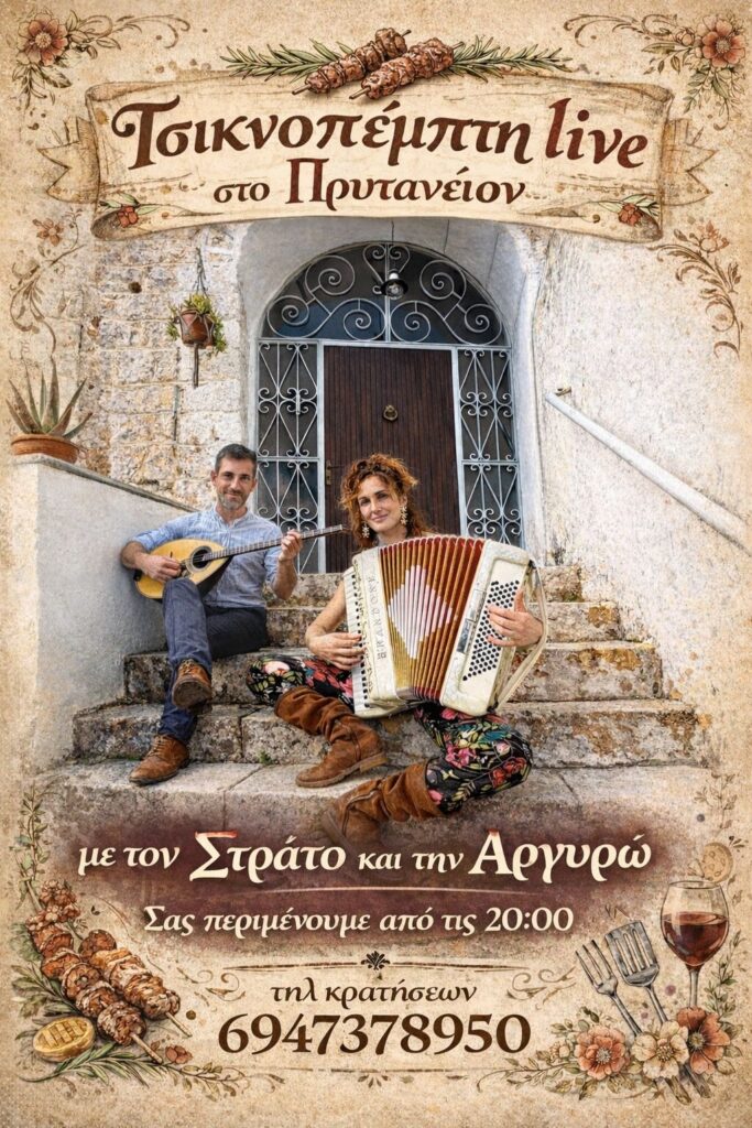 Από τις 20:00, το κοινό θα έχει την ευκαιρία να απολαύσει παραδοσιακούς ήχους, καλό φαγητό και κρασί, σε ένα ζεστό και γιορτινό περιβάλλον, αντάξιο του εθίμου της Τσικνοπέμπτης.