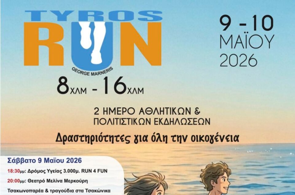 Ο Τυρός Αρκαδίας ετοιμάζεται να φιλοξενήσει το διήμερο 9 και 10 Μαΐου 2026 το Tyros Run, μια διοργάνωση που συνδυάζει τον αθλητισμό με τον πολιτισμό, προσελκύοντας συμμετέχοντες κάθε ηλικίας.