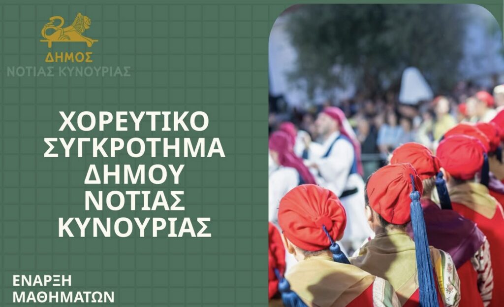 Με ιδιαίτερη χαρά και ενθουσιασμό ξεκίνησαν και φέτος τα μαθήματα του Χορευτικού Συγκροτήματος του Δήμου Νότιας Κυνουρίας, υπό την καθοδήγηση της έμπειρης δασκάλας παραδοσιακών χορών, Χριστίνας Μάνου.